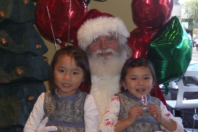 | Twins enjoying their visit with Santa at Solano Kids | |